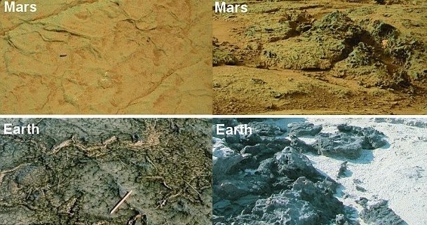 Проанализировав снимки, Ноффке нашла поразительное сходство между объектами на Земле и Марсе. Это может свидетельствовать об активности микроорганизмов в марсианских водоемах в древности.
