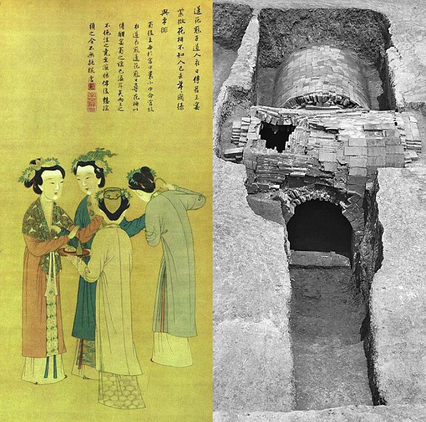 На картинке слева изображение китайских наложниц, справа - гробница "госпожи Мэй". © Chinese Cultural Relics