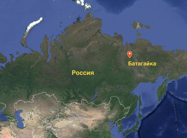 Якутская термокарстовая котловина Батагайка достигает в длину почти километра, в ширину 800 метров, а ее глубина составляет порядка сотни метров. Кратер находится у подножия горы Киргилях в семи километрах от поселка Батагай.