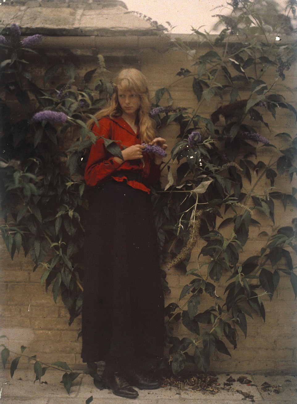 Потрясающие фотографии, на которых запечатлена юная белокурая красавица в красной блузе, сняты по методу автохрома, запатентованному братьями Люмьер в 1903 году во Франции. Мервин был пионером в применении этой техники. Он использовал стеклянные пластины, покрытые картофельным крахмалом, частицы которого окрашивались в три цвета: красный, синий и зеленый.