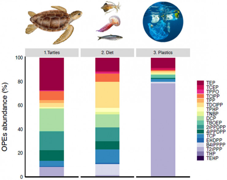 Команда под руководством Эджаррат проанализировала 19 добавок, используемых в пластмассах и, как известно, нарушающих гормонорегулирующую эндокринную систему, так как они являются нейротоксичными и даже канцерогенными. У всех черепах были обнаружены фосфорорганические соединения (ФОС), которые добавляют в пластмассы для улучшения их огнезащитных свойств. Также анализ показал присутствие пластика во всех черепахах с концентрацией от 6 до 100 нанограмм на грамм мышц.