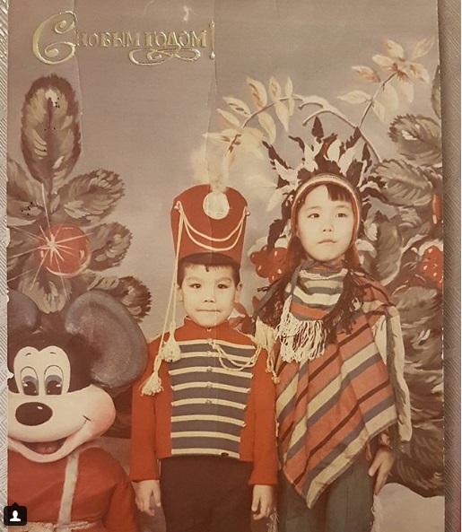"Это был пятый класс. Я училась в школе № 44 в Усть-Каменогорске. Наша учительница любила спектакли, и на Новый год она решила поставить очередную пьесу, в которой участвовали я и моя подружка Зарина. Мне досталась роль морской ведьмы, а подруге - бабы Яги. На мне было старое платье моей мамы коричневого цвета, на лице была желтая маска, а волосы я распустила. Честно говоря, сценарий я не помню, но помню, что всем понравилось. Кто-то нас узнавал, а кто-то нет, кто-то смеялся. До сих пор смотрим фото и смеемся", - вспоминает актриса.