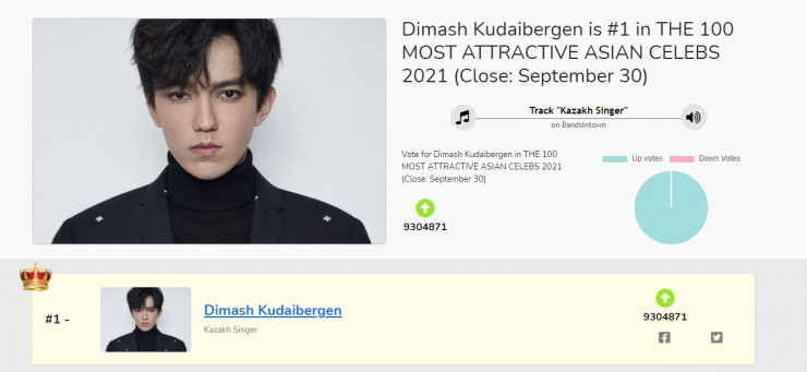В онлайн-голосовании, которое проходило на сайте King Choice, Димаш Кудайберген набрал 9 304 871 голос. На втором месте расположился солист южнокорейской группы BTS Ким Сокджин с 8 197 925 голосами. Третье место досталось еще одному южнокорейскому певцу Чха Ын У (1 918 514 голосов).