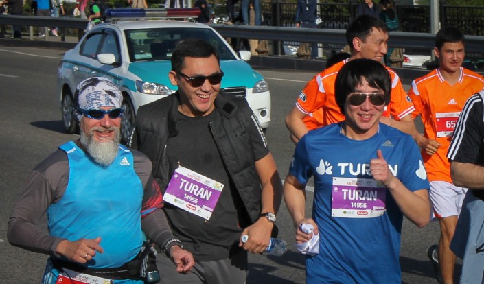 Тренером команды была олимпийская чемпионка по легкой атлетике Ольга Рыпакова, в состав также вошел уже опытный марафонец Дмитрий Жуков, финансовый директор компании Asia Waters, выпускающей минеральную воду Turan. Звездные участники пробежали эстафету Экиден с дистанцией в 42,5 километра.