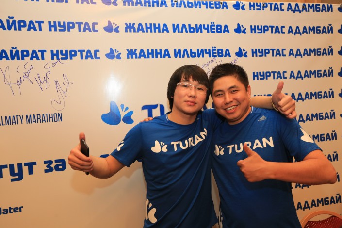 На пресс-конференции, проведенной накануне марафона, Нуртас Адамбай сказал: "Спасибо природной воде Turan за возможность поучаствовать в марафоне. Я рад, что казахстанские бренды уделяют внимание здоровью нации и пропаганде здорового образа жизни. Я - патриот и всегда радуюсь появлению и популярности отечественных продуктов - к примеру, в ресторанах вместо зарубежной воды всегда прошу казахстанскую. Если после нашего пробега десяток мальчишек и девчонок займутся спортом, это уже победа", - говорит Адамбай.