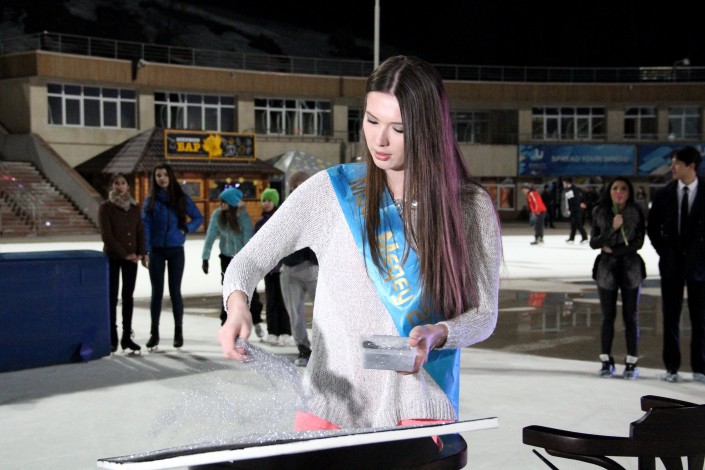 Самой красивой и талантливой девушкой стала 19-летняя студентка университета КИМЭП Акбота Жумакаримова. Она покорила членов жюри своей харизмой и талантом. Девушка представила нежный танец на льду под композицию Celine Dion My heart will go on из кинофильма "Титаник". Акбота отметила, что занималась бально-спортивными танцами, а не так давно встала на коньки. Это случилось после того, как она решила принять участие в ледовом шоу среди студентов Алматы, где заняла второе место. Отметим, что в качестве приза ей досталась путевка в Париж.