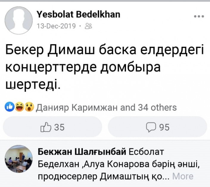 Алайда ол Димаш Құдайбергеннің шапан киіп, домбыра шерткенін неге қолдамайтыны туралы сұраққа да жауап беруден бас тартты. Оның айтуынша, алдағы уақытта ол ойын толықтырып жазады.
