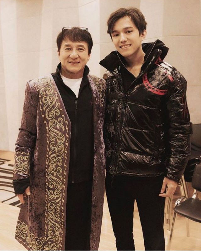 "Бүгін менің өмірімде тариxи есте қалатын ерекше күн! Атақты актер Джеки Чан мырза мені теледидардан көріп, кездесуге шақырды! Кездесуде актер маған өзінің эксклюзивті күртешесін және арнайы фирмалық ән тыңдау құрылғысын сыйға тартты! Ал мен актерге қазақтың шапанын жауып, домбыраны сыйға тарттым! Домбырамен бір күй шертіп беруімді өтінген Джеки Чанға Нұрғисаның "Әлқисасынан" шашу шаштым!", - деп жазған еді Димаш Құдайберген бұл суретінің сипаттамасына.