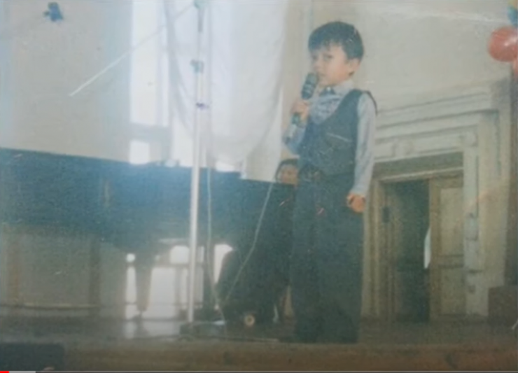 Сахнада тұрған мына кішкентай бала - есімі дүние жүзіне белгілі Димаш Құдайберген. Оның ата-анасы да, ата-әжелері де музыка адамдары. Бірі домбырада ойнаса, екіншісінің ән айтуға бейімі мол. Димаштың Раушан атты қарындасы, Мансұр атты інісі бар.