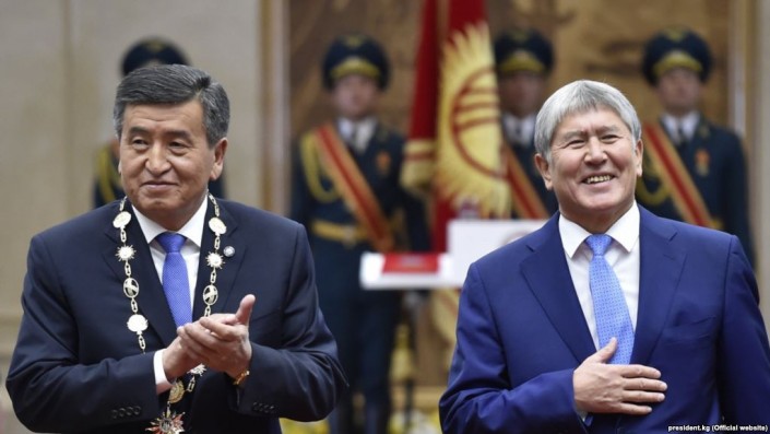 Сооранбай Жээнбеков пен Алмазбек Атамбаев ұлықтау рәсімінде. © president.kg