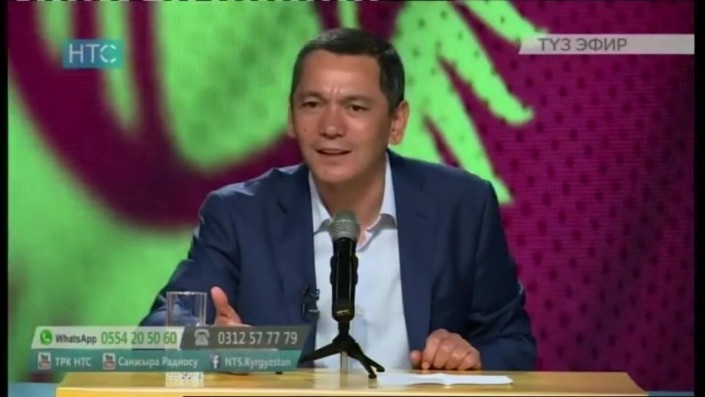 После концерта Сооронбай Жээнбеков отправился в студию государственного телеканала КТРК, где принял участие в специальном выпуске ток-шоу "Ой ордо".