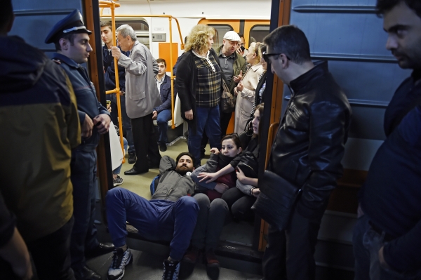 Участники акции гражданского неповиновения блокируют вагон Ереванского метрополитена. Фото ©РИА Новости