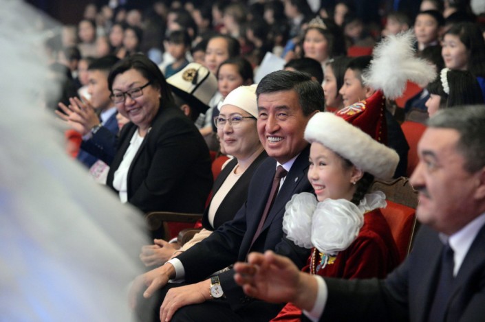 Президент Кыргызстана Сооронбай Жээнбеков и его жена Айгуль приняли участие в новогоднем представлении для детей, которое состоялось 28 декабря в Бишкеке. Об этом сообщает пресс-служба главы государства.