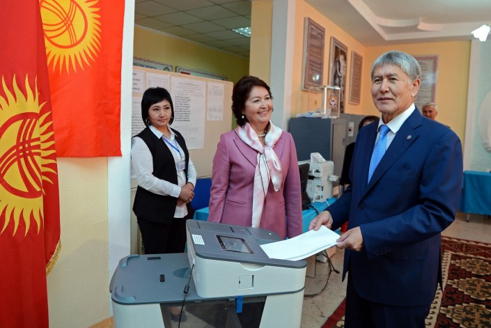 Чуть позже проголосовал действующий президент КР Алмазбек Атамбаев и первая леди Раиса Атамбаева. Свои голоса они отдали в избирательном участке № 1209, расположенном в профессиональном лицее № 5 города Бишкек.