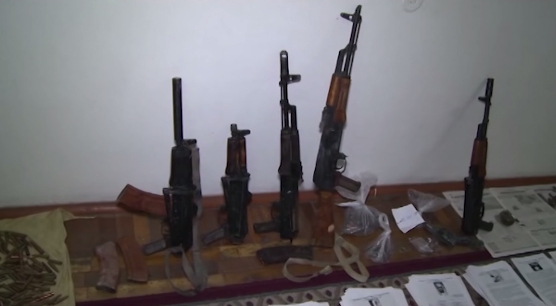 Обнаружено и изъято шесть автоматов АК, один АКСУ, пять пистолетов ПМ и ТТ, большое количество гранат и боеприпасов, а также 500 килограммов аммиачной селитры для самодельного взрывного устройства. В ходе спецоперации получили ранения различной тяжести четыре сотрудника спецподразделения ГКНБ, которые госпитализированы в медучреждения Бишкека.