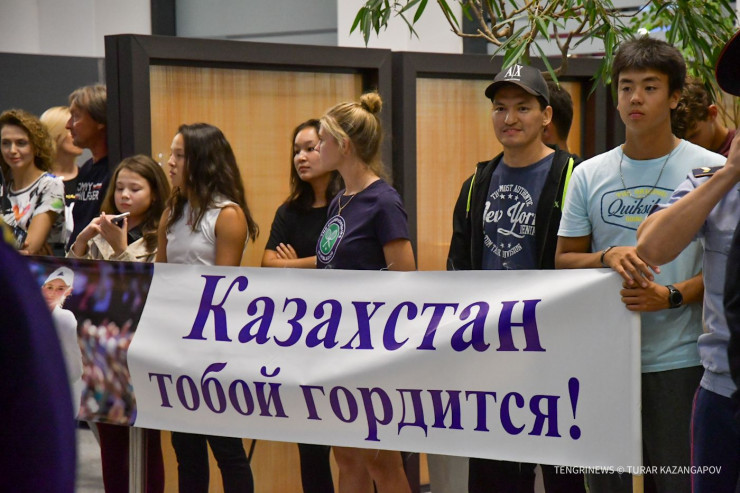 Казахстанская теннисистка Елена Рыбакина, одержавшая историческую победу на Уимблдонском турнире, вечером в понедельник, 11 июля, прилетела в Нур-Султан. В аэропорту столицы спортсменку встречали родственники, друзья, чиновники, представители СМИ и многочисленные болельщики, сообщает корреспондент Tengrinews.kz.