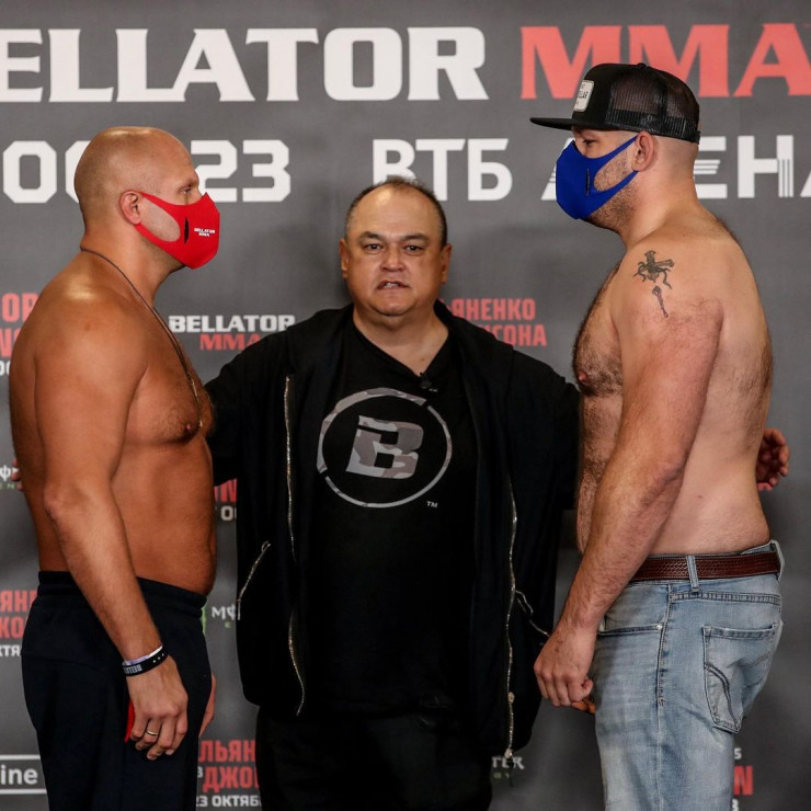 Федор Емельяненко и Тимоти Джонсон на церемонии взвешивания. © instagram/bellatormma