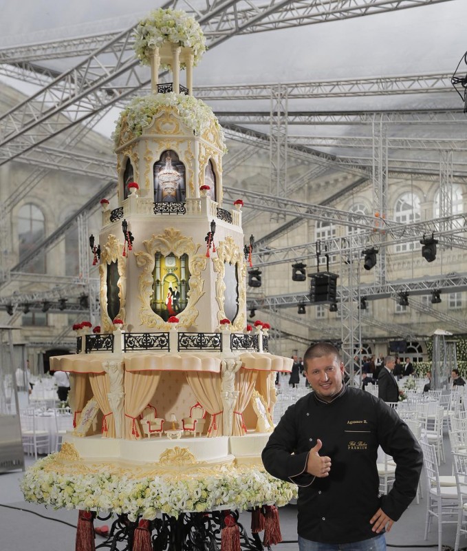 Накануне свадебный торт российского кулинара Рената Агзамова, изготовленный для торжества в Шымкенте, очень удивил казахстанцев своей красотой. Огромный торт весил 1500 килограммов. Диаметр торта - 3 метра, высота - 4,2 (с тележкой). Перед вывозом торта в зал команда кондитеров не спала трое суток.