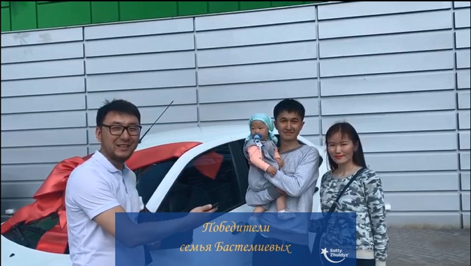 А молодая семья Бастемиевых из Павлодара в эту же субботу, но несколькими часами ранее выиграла новый автомобиль. Розыгрыш авто проводился в рамках совместной акции Национального оператора лотереи "Сәтті Жұлдыз" и сети супермаркетов. Подобная акция стартовала в Нур-Султане 1 июня и продлится до 7 августа, по окончании которой также будет разыгран автомобиль.