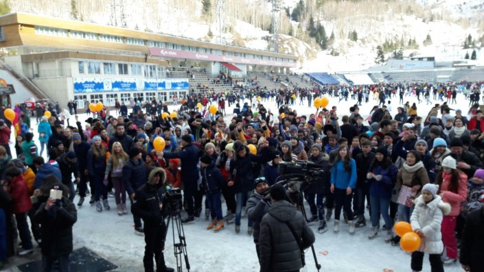 5 тысяч шаров запустили в небо влюбленные пары после массового катания на "Медеу"