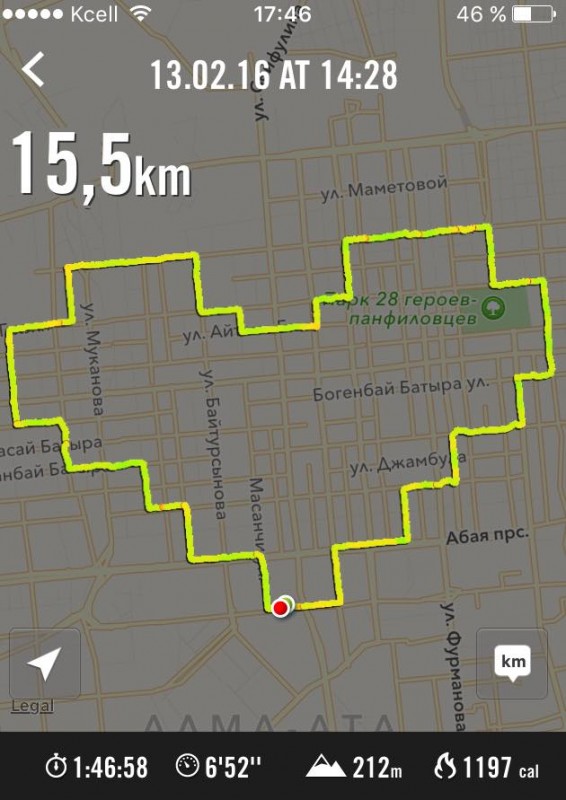 Судя по изображению, Санжар Даулбаев преодолел путь в 15,5 километра. Девушка пришла в восторг от такого поздравления. По ее словам, это самое оригинальное признание в любви. Друзья молодых влюбленных также выразили восхищение.