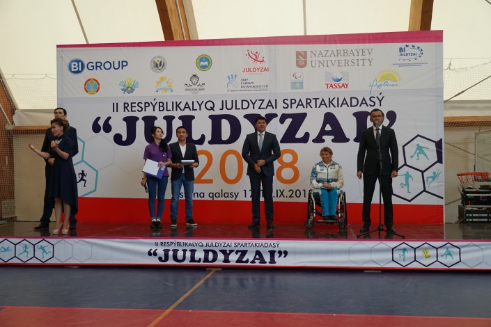 Спартакиаду торжественно открыли первый заместитель Председателя партии "Нұр Отан" Маулен Ашимбаев, паралимпийская чемпионка по плаванию Зульфия Габидуллина, топ-менеджер BI Group Арман Ахметов и общественный деятель Аружан Саин.