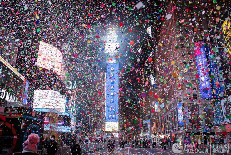 Новый год на Таймс-сквер в крупнейшем городе США - Нью-Йорке - прошел с ограничениями. Площадь украсили к празднику, в полночь состоялся большой запуск конфетти, но людей туда не пустили, все собравшиеся стояли за оцеплением. Выступающие были огорожены от толпы зрителей и все были в защитных масках. Фотографии с места событий опубликовало РИА Новости.