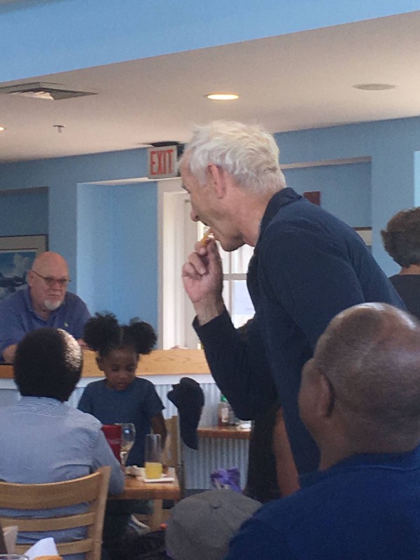 В интернете появились фотографии голливудского актера Билла Мюррея, ворующего картошку у удивленного посетителя кафе в аэропорту Мартас-Винъярд в США, сообщает Mashable.