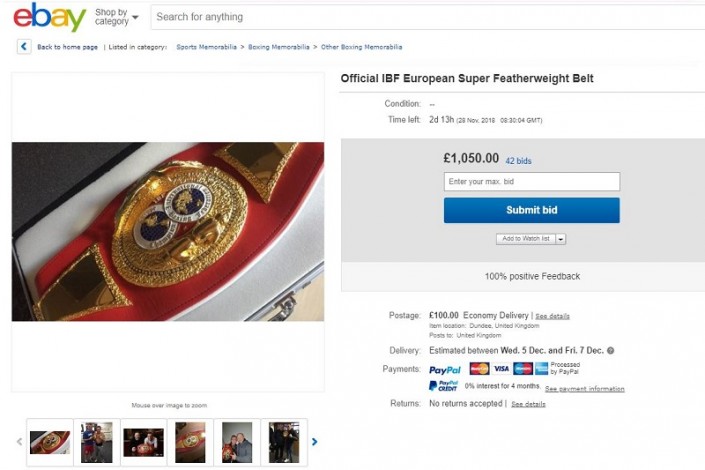Отмечается, что боксер может сделать автограф на поясе и лично его доставить, если это пожелает покупатель. Изначальная цена составляет 1 050 фунтов (более 493 тысяч тенге).