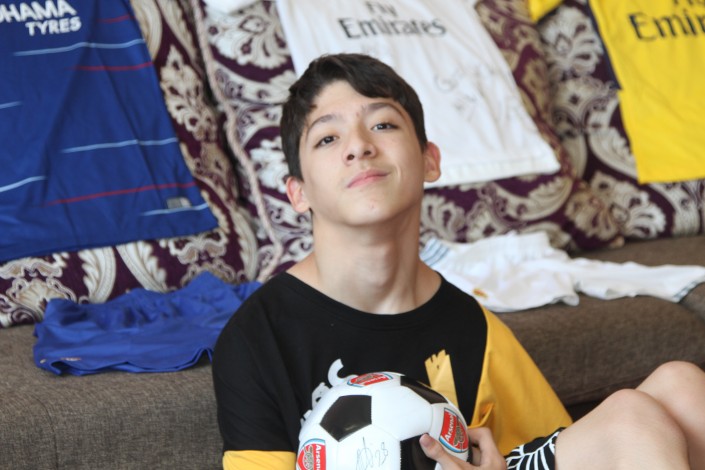 Еще одно из самых любимых увлечений разностороннего юноши - футбол. Он часто проводит время за просмотром футбольных матчей по телевизору, в интернете и играет в спортивные видеоигры. Ему с раннего детства дарят форму различных мировых футбольных клубов. Сейчас в его коллекции около 50 пар футболок с шортами.