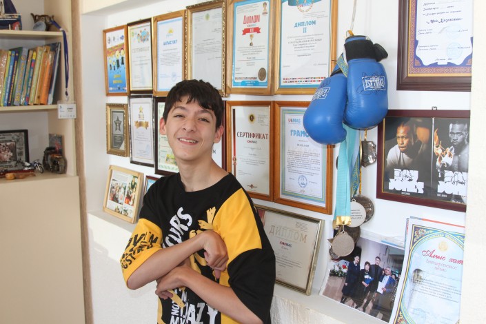 "Я обожаю футбол, смотрю его с детства. Играю в футбол с мальчишками в школе, с друзьями во дворе, люблю смотреть футбольные матчи и чемпионаты. Два года назад я болел за "Реал Мадрид", сейчас мой любимый футбольный клуб - "Челси". Мой брат фанат этого клуба, вот он меня переубедил. Хотя обе команды мне нравятся. Если исходить из стран, выигрывающих чемпионат мира, это Франция и Бельгия. Мои предпочтения - это сборные Испании и Бразилии. Кстати, на мой 12-й день рождения родные устроили сюрприз. Они организовали мне встречу с тренерами Академии "Реал Мадрид" из Испании, когда они приехали в одну из международных школ Алматы. Они подарили мяч со своими автографами и форму клуба. Я был в восторге", - рассказал юноша.