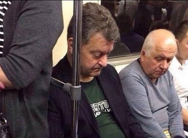 Украинаның бұрынғы президенті Петр Порошенконың "сыңары" метрода ұйықтап отырғандай болып түсіп қалған. Украиналық блогер Роман Синицын Facebook желісіндегі парақшасында бұрынғы президентке ұқсайтын адамның суретін жүктеген.