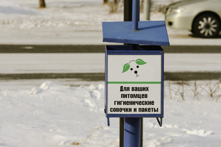 И весьма необычные объекты, а именно боксы с гигиеническими совочками и пакетами для питомцев.