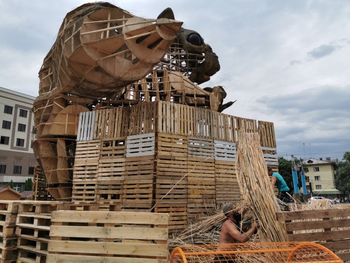 Алматинская Белка оголилась! С гигантского грызуна сняли всю солому, остался лишь каркас из железа и фанеры. Сейчас владельцы Белки собирают средства на новую одежку из пластика. Но денег катастрофически не хватает. Изначально речь шла о сумме 10 миллионов тенге, однако она может быть пересмотрена в сторону уменьшения. Об этом корреспонденту Tengrinews.kz рассказала продюсер проекта Майра Измайлова.
