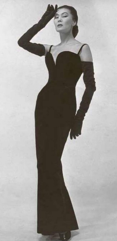 "Самое необычное имя, которое я когда-либо слышала - Алла Ильчун. Модель Диора недавно прибыла в Штаты из Парижа. Ее имя звучит так, как будто она сама его придумала. Алла, в жизни - мадам де Дюльмен, признает, что платья с открытым декольте обычно гарантируют успех с клиентками, будь то француженки, американки или элегантные дамы любой другой национальности. Некоторые из этих поразительных вечерних нарядов Диора открывают зрителю 36-дюймовый бюст Аллы, как самые смелые наряды Мэрилин Монро. Однако стройная и высокая парижская модель никогда не выглядит напряженной и не поправляет наряд на груди. Любимое платье Аллы - красный креповый наряд под названием Maxim’s. Его свободный лиф, рукава длиной в три четверти и тонкий подол демонстрируют шик и скрытую элегантность. Но U-образный вырез открывал так много прекрасной Аллы, что Диор прикрепил красную розу внизу декольте, чтобы сгладить эффект. В личной жизни Алла придерживается сдержанного стиля - свитера и юбки. Несмотря на свое евразийское происхождение, Алла преподносит свой гардероб как настоящая парижанка", - говорится в отзыве модного эксперта Dorothy Kilgallen.