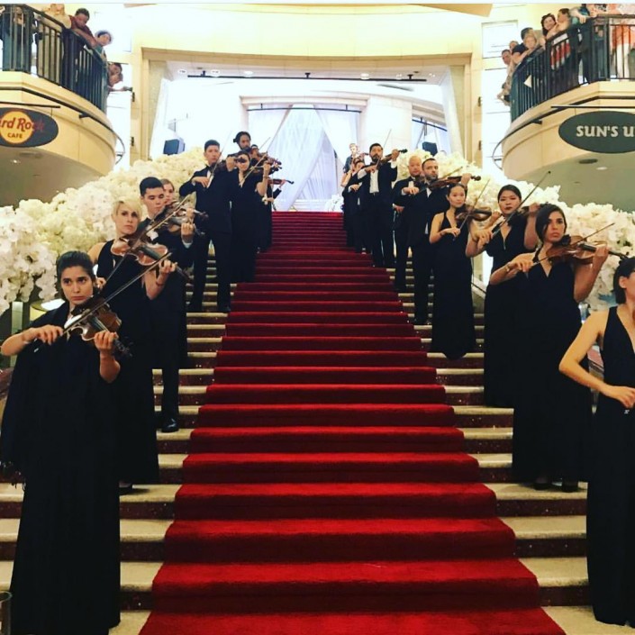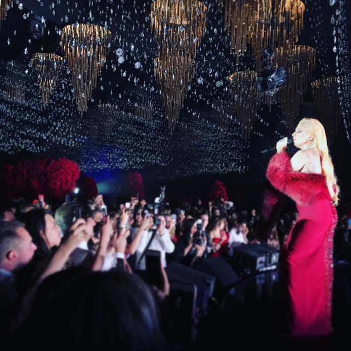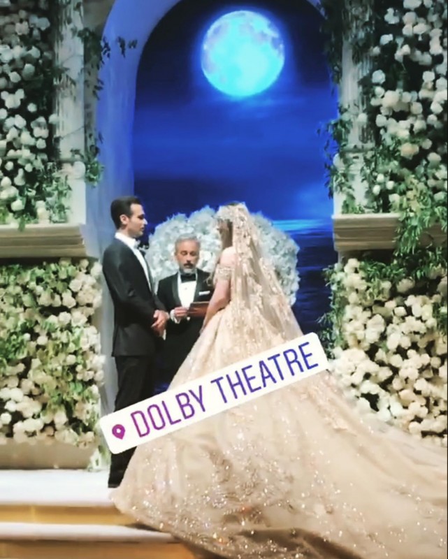 Церемония бракосочетания прошла в Dolby Theatre, где традиционно проходит вручение премии "Оскар". Гостей на свадьбе развлекали Николай Басков, Стас Михайлов, Светлана Лобода и приглашенная суперзвезда - Леди Гага. А ведущими на торжестве были Ксения Собчак и Андрей Малахов.