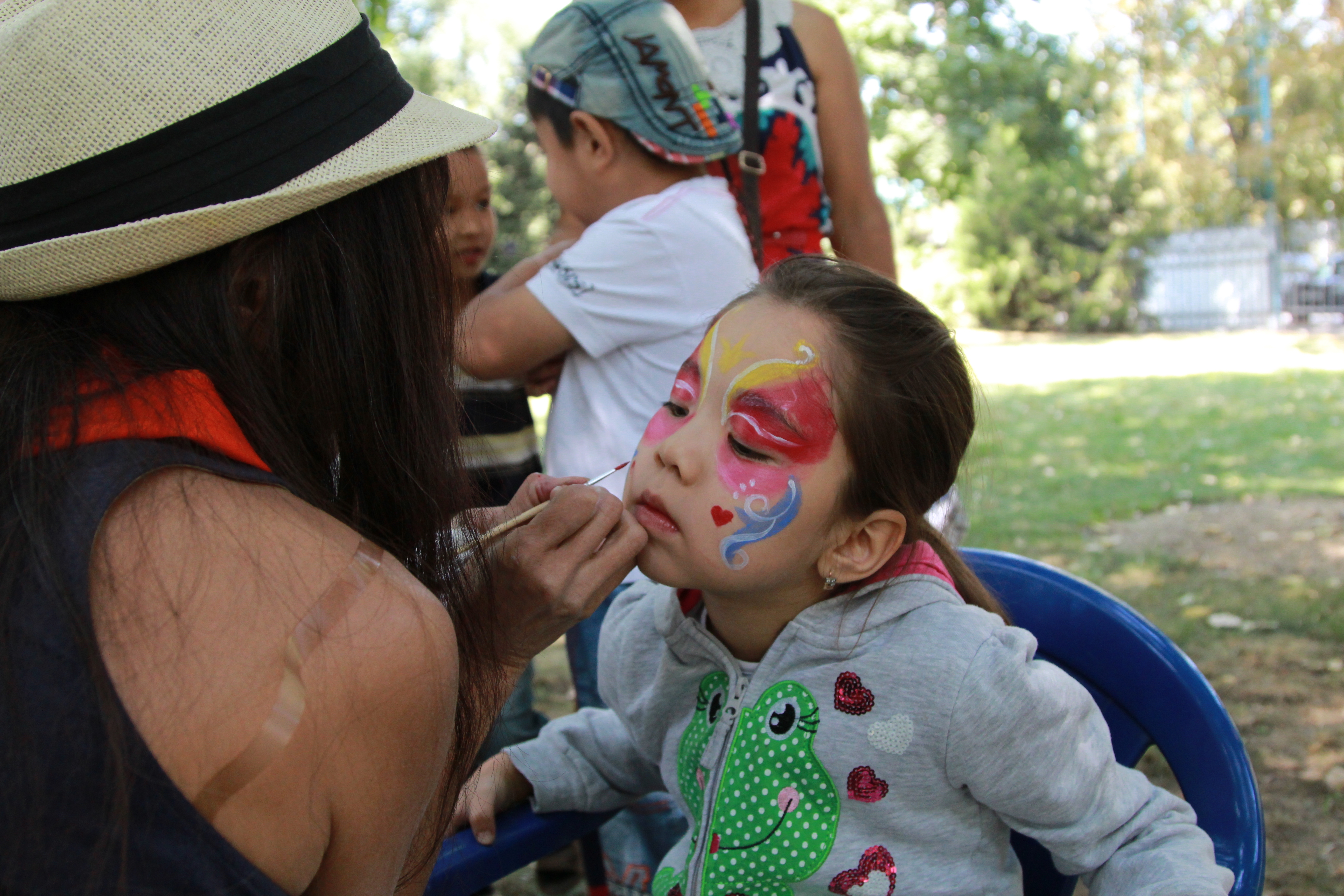 Маленьких гостей развлекали цирковые артисты, клоуны, проводили разные конкурсы, викторины и танцы. Праздничная площадка была разбита на несколько секторов. В одном детей разукрашивали, в другом - стояли столы для рисования и занятий с пластилином. В завершение праздника для участников был организован обед, после чего дети полакомились мороженым.
