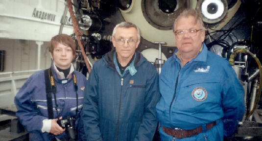 Алексей Тиваненко (крайний справа) у батискафа "Мир". © sibreal.org