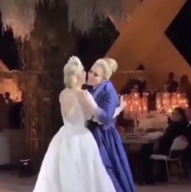 На невесте было традиционное белое платье. Сообщается, что она прибыла на церковную службу в пуленепробиваемой машине.