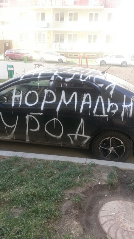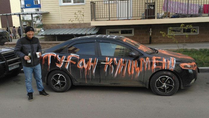 "Утром я вышел из дома, должен был ехать в аэропорт, чтобы встретить друга из Польши. Радостный вышел из дома и у подъезда увидел свою исписанную краской машину. Настроение сразу упало, я подумал: "Почему  именно моя машина, я ведь припарковался правильно". Я решил, что нужно идти к охране и звонить в полицию. Пока шел к охранникам, увидел машину друга. Только тогда я понял, что произошло", - поделился Бекбол Калибеков. Оказалось, что друг из Польши прилетел раньше и также принимал участие в инсценировке.