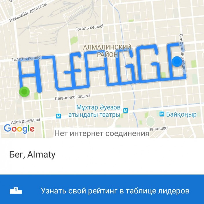 Напомним, в конце августа трое жителей Алматы пробежали полумарафон, чтобы написать на карте Алматы "Алға GGG".