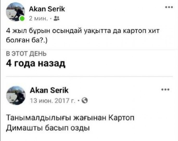 Азық-түлік қымбаттауы бұған дейін де тіркелген. Бірнеше жыл бұрын желі қолданушысы картоп танымалдылы әнші Димаштан озып кеткенін айтыпты.