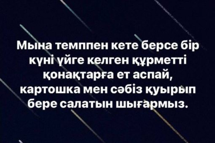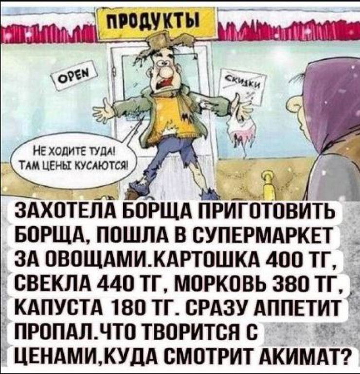 Тағы бірі көкөністер сатып әкеліп, борщ жасамақ болған. Бағасын көріп, "тәбетінен айырылыпты".
