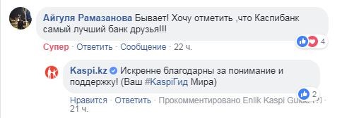К вечеру среды работа Kaspi.kz была восстановлена. В компании предупредили, что технические работы продолжаются, и некоторое время еще могут быть перебои в работе. Казахстанцы с пониманием и благодарностью отзывались о восстановлении привычных сервисов. Кстати, это не первая инфоатака на Kaspi, и они могут себе позволить отнестись этому с юмором.