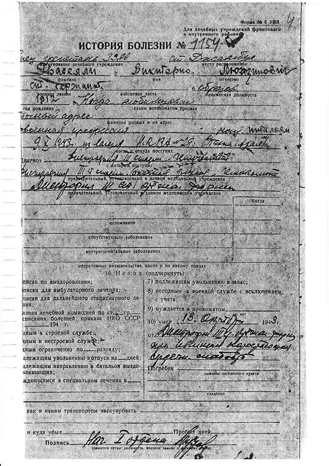 Акт о смерти военнопленного.