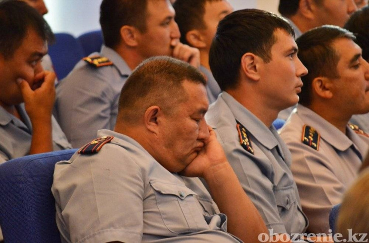 Бұған дейінгі осындай жиында полицейлердің ұйықтап қалған. Әкім сол ұйықтап қалған полицейдің суретін үлкен экранға шығартты.