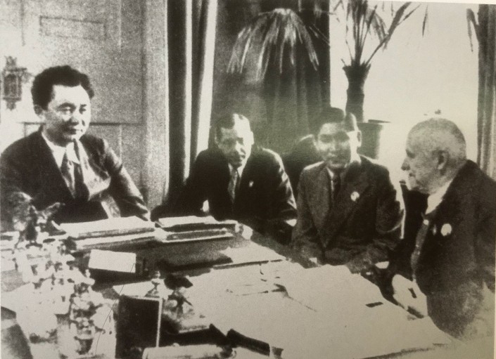 Сатпаев, Белый, Ундасынов, Комаров обсуждают открытие Академии наук КазССР. 1946 год