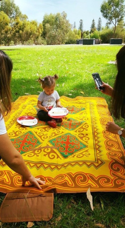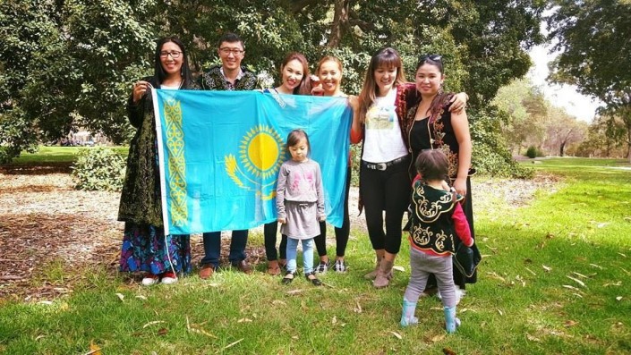 Женщины облачились в камзолы с национальным орнаментом, мужчины - в чапаны. "Из Казахстана очень много здесь русских, татар, корейцев и казахов. 70 процентов казахстанцев из Атырау и Алматы. Это нефтяники, геологи, которые работают и повышают квалификацию в зарубежных компаниях, таких как Shell, Inpex, Chevron, Eni. Мы стараемся сохранить наши традиции, семьями собираемся в Кings park и готовим наурыз-коже. Дети играют в асыки и другие национальные игры", - рассказал казахстанец Айбар Бигалиев.