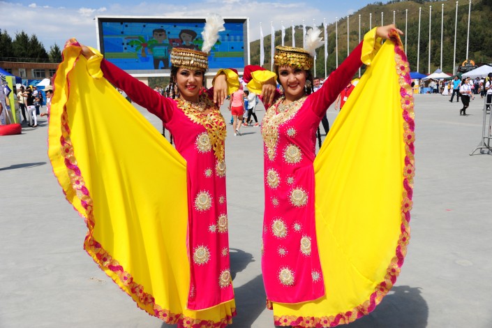 На площадке высокогорного катка "Медеу" при участии Казахского географического общества был воссоздан этноаул, где демонстрировались обряды и обычаи казахского народа.