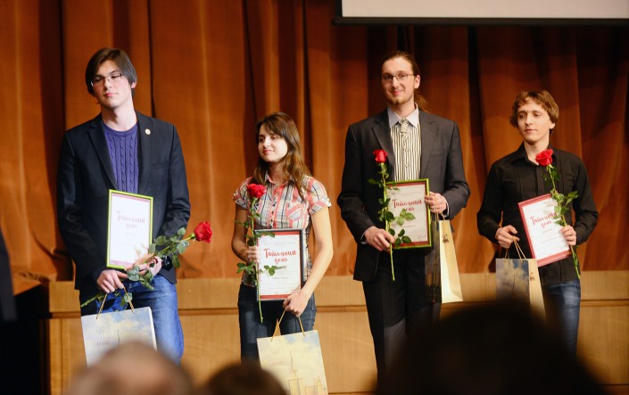 Адиль Кабылда (слева) вместе с другими призерами. Фото с сайта msu.ru